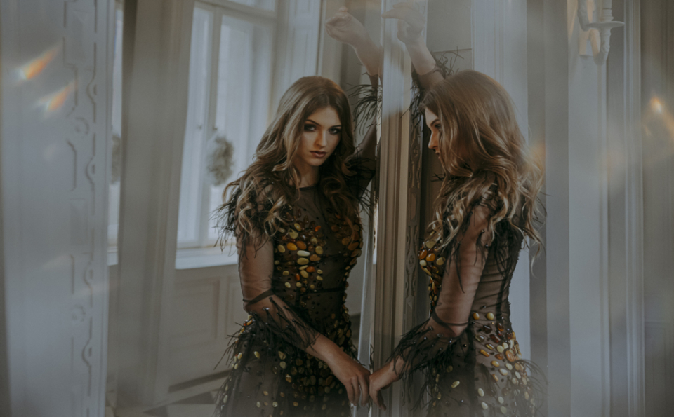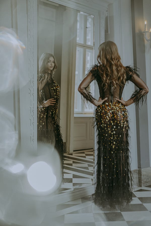 Patrząc na tę suknię, trochę trudno uwierzyć, że jest ona realizacją dziewczęcych wspomnień związanych z wakacjami nad morzem, magią bursztynu i jego pozytywnym wpływem na zdrowie.