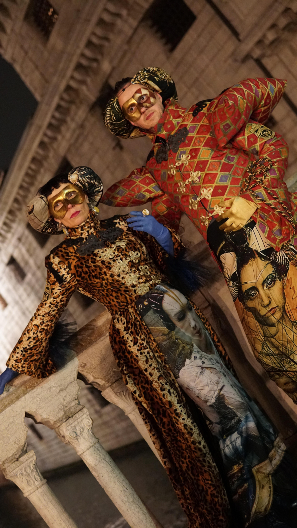 Gdyńscy projektanci Jola Słoma i Mirek Trymbulak już po raz trzeci w swojej karierze sięgnęli po temat karnawału w Wenecji – po raz pierwszy 20 lat temu, kiedy znajomość z weneckimi maskarzami Sergiem i Massimem Boldrinami zainspirowała ich do stworzenia kolekcji „Etiuda Wenecka”. Kolejna odsłona tego tematu pod hasłem „La Via Dell’ Ambra” została zaprezentowana w ubiegłym roku na obydwu krańcach Bursztynowego Szlaku – w marcu w Gdańsku i w maju w Wenecji.