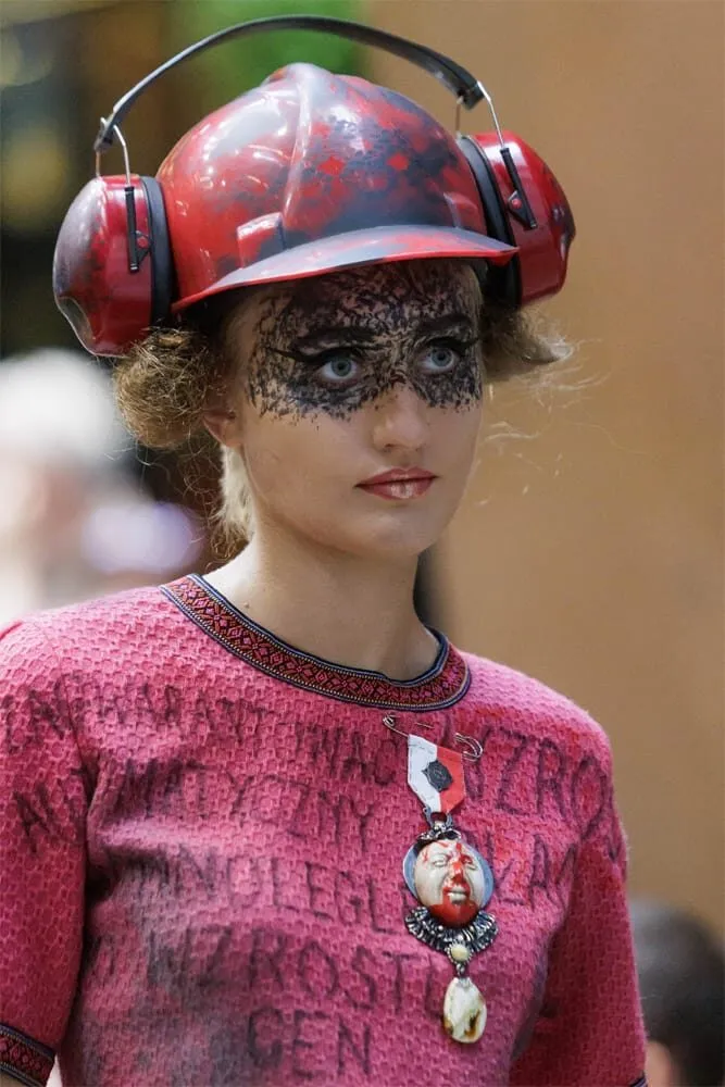Na wybiegu zobaczyliśmy autorskie kreacje z charakterystycznymi nadrukami postulatów, elementami roboczych strojów stoczniowych, a także dodatki „w wersji glamour” – od kasków i spawalniczych rękawiczek po flanelowe koszule. Każdy detal niósł symboliczne znaczenie, przypominając o sile wspólnoty i duchu wolności, który zmienił losy Polski i Europy.