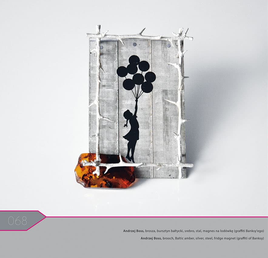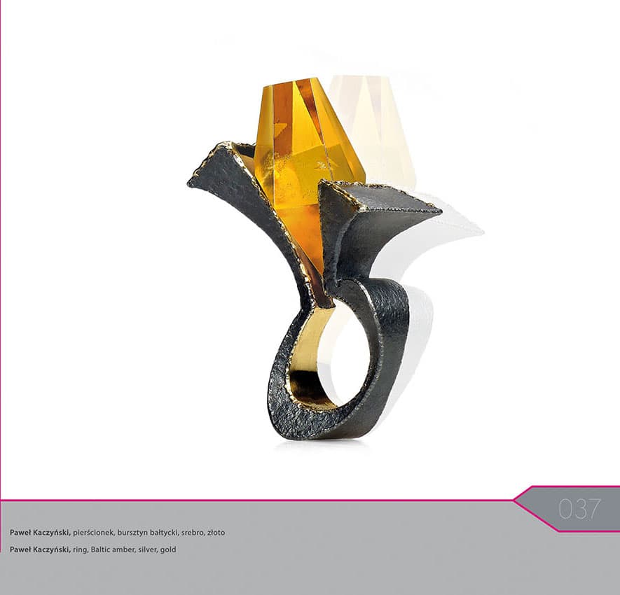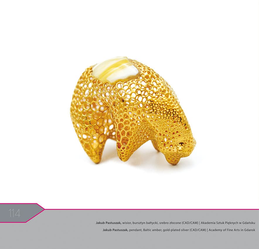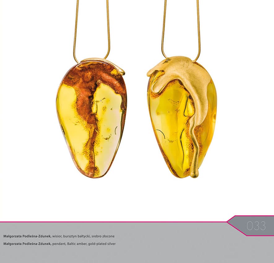 Dariusz Zarański: wisior - bursztyn bałtycki, srebro, złoto, diament